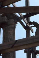 Jordan. Pella (Tabaqat Fahl), workman on wooden scaffolding surrounding column and capital