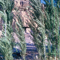 Jordan. Iraq al-Amir, looking at first "Tobiah" cave from camp. Inscription visible in center