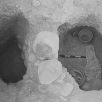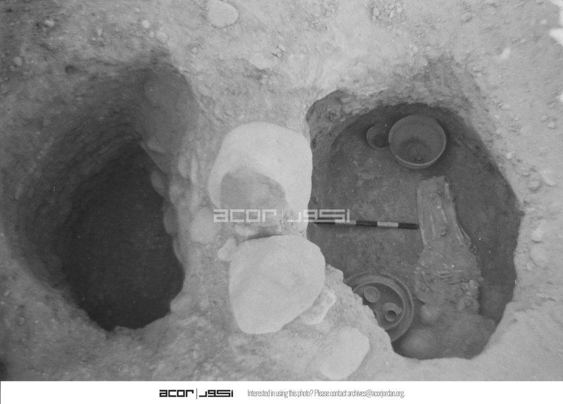 Jordan. Bab edh-Dhra‘, Cemetery C, Tomb C6. Looking east at shaft on left and tomb chamber on right