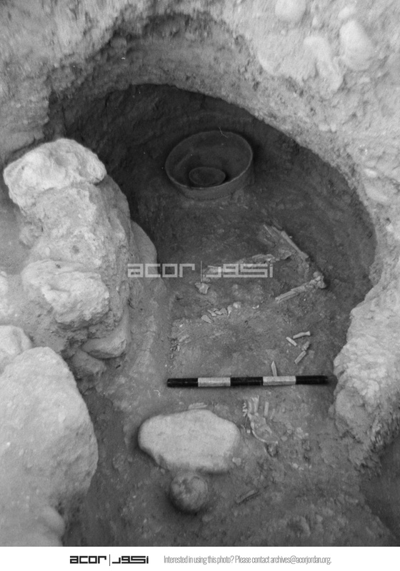 Jordan. Bab edh-Dhra‘, Cemetery C, Tomb C3 looking south-southeast. Single articulated burial with stone on head