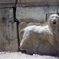 Jordan. Iraq al-Amir, feline fountain in Qasr al-Abd east wall