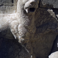 Jordan. Iraq al-Amir, Qasr al-Abd, closeup of front half of fountain