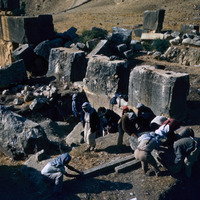 Jordan. Iraq al-Amir, clearing megaliths from inside the Qasr Al-Abd