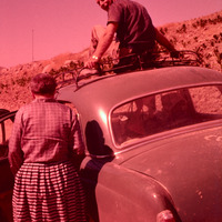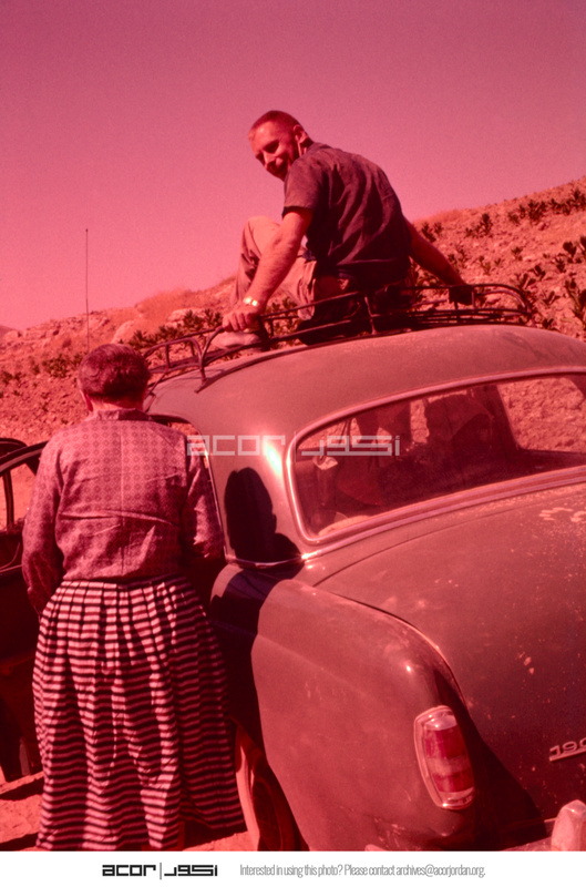 Jordan. Iraq al-Amir, Paul Lapp on top of Mercedes Benz