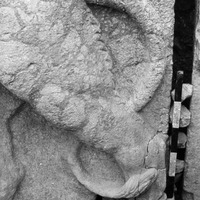 Jordan. Iraq al-Amir, closeup of fountain rear
