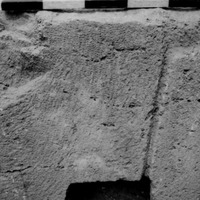 Jordan. Iraq al-Amir, square II.3, looking east at closeup of peg-hole channel at west end of square