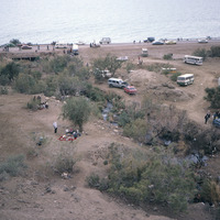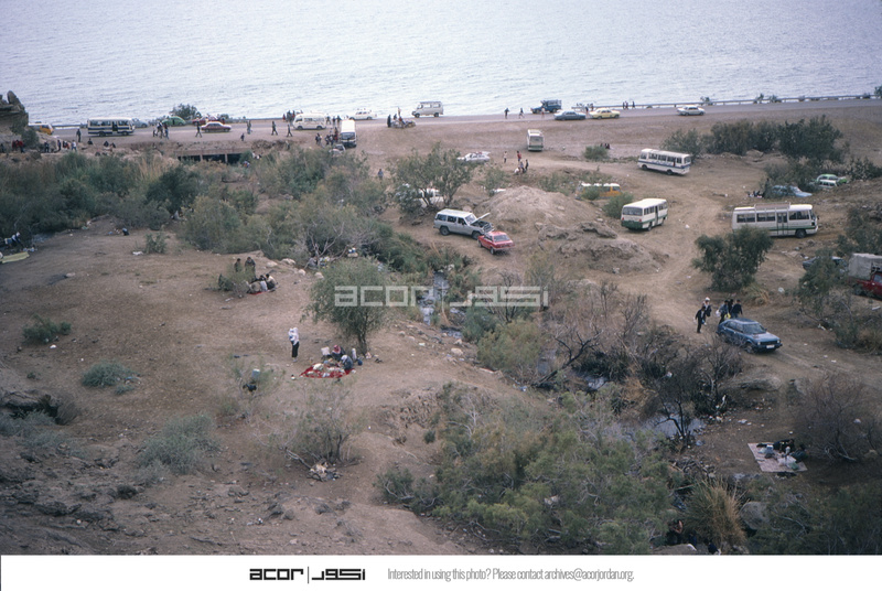 Jordan. Ain ez-Zara, looking at picnics from near German excavations