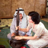 Jordan. Irbid, al Husn, Helen's (?) grandparents' grinding coffee