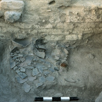Jordan. Bab edh-Dhra‘ town site, Field XVII.1, mass of broken pottery inside early Bronze Age III domestic structure