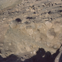 Jordan. Bab edh-Dhra‘ town site, Field XVII, looking east at stratification and sherds protruding in erosion cut