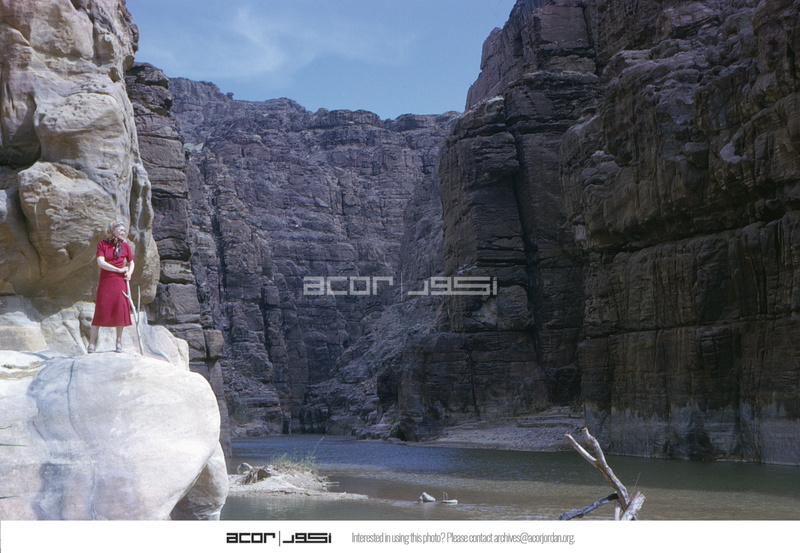 Jordan. Wadi Mujib, looking east up the wadi and Irene Lapp