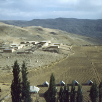 Jordan. Iraq al-Amir, looking south at village and camp from caves