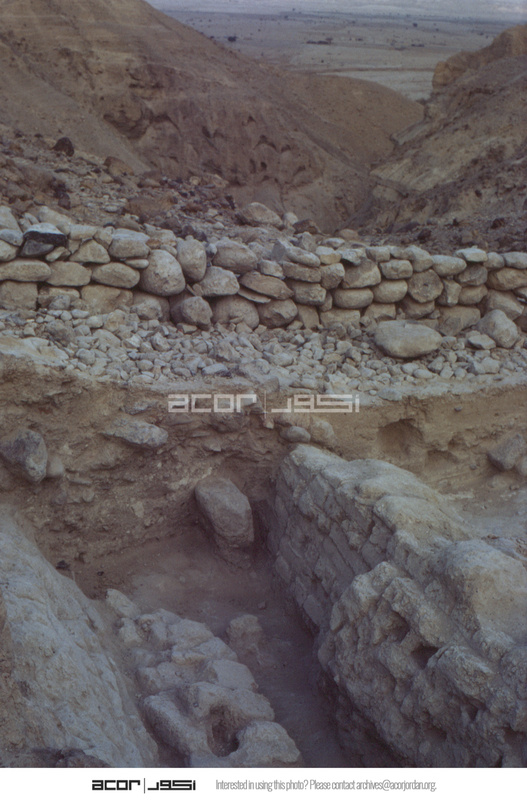 Jordan. Bab edh-Dhra‘ town site, Field XIV excavations, looking west at retaining wall to south post