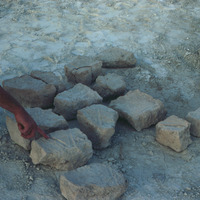 Jordan. Bab edh-Dhra‘ town site, Field XIII, David McCreery pointing at marked brick