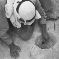 Jordan. Bab edh-Dhra' town site, Field II.1, Jabr cleaning "bat-hole"