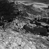 Jordan. Bab edh-Dhra' town site, Field I, excavating both inside and outside town wall