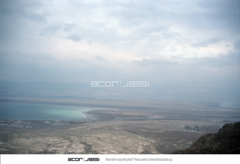 Jordan. Bab edh-Dhra', view across Dead Sea from Masada