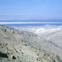 Jordan. Bab edh-Dhra', on the way to site. Lisan Peninsula visible in Dead Sea