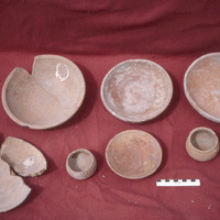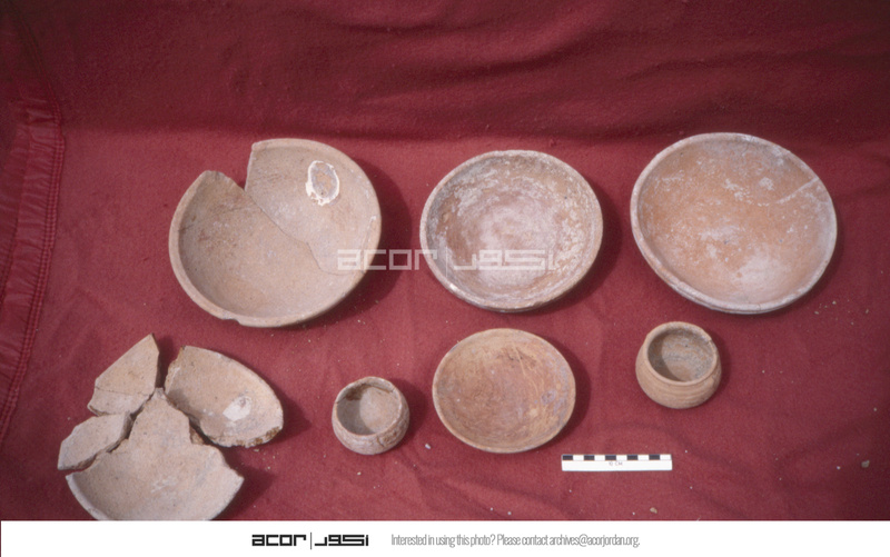Jordan. Bab edh-Dhra' cemetery, roadside trench tomb pottery photographed at Karak. Bowls 53, 55, 18 (back) and 31, 03, 05, 52, 57 (front)