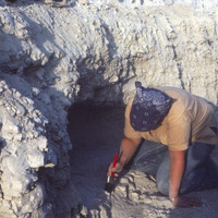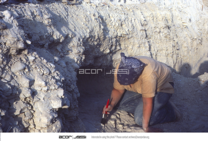 Jordan. Bab edh-Dhra' cemetery, roadside trench tomb. Liza working in west side