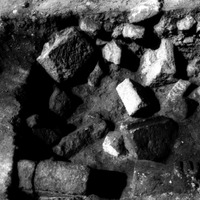 Jordan. Iraq al-Amir, square II.11 approximately a meter down, showing fallen stones of north Qasr al-Abd facade