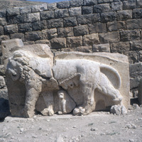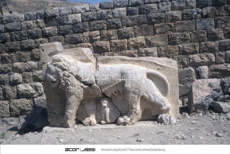 Jordan. Iraq al-Amir, relief of lion and baby at Qasr al-Abd