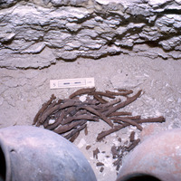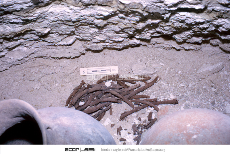 Jordan. Bab edh-Dhra', Cemetery A, Tomb A76E. Closeup of fragments of basket coils