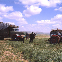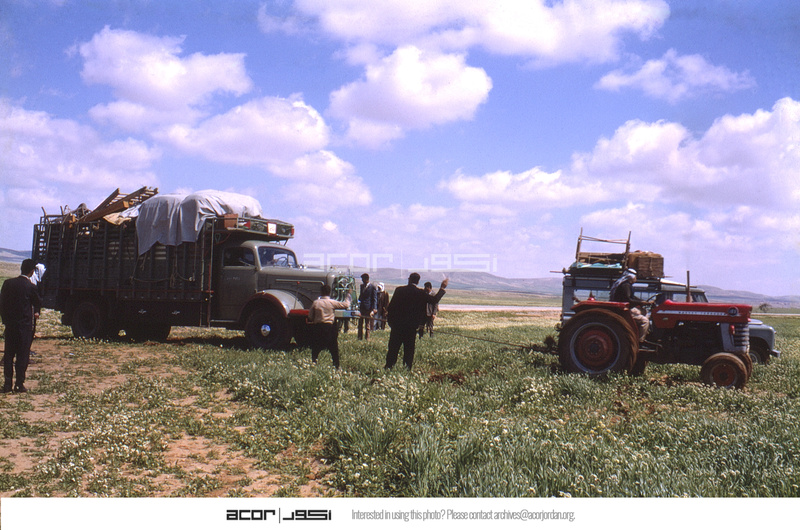 Jordan. Tell er-Rumeith, arrival at tell with equipment
