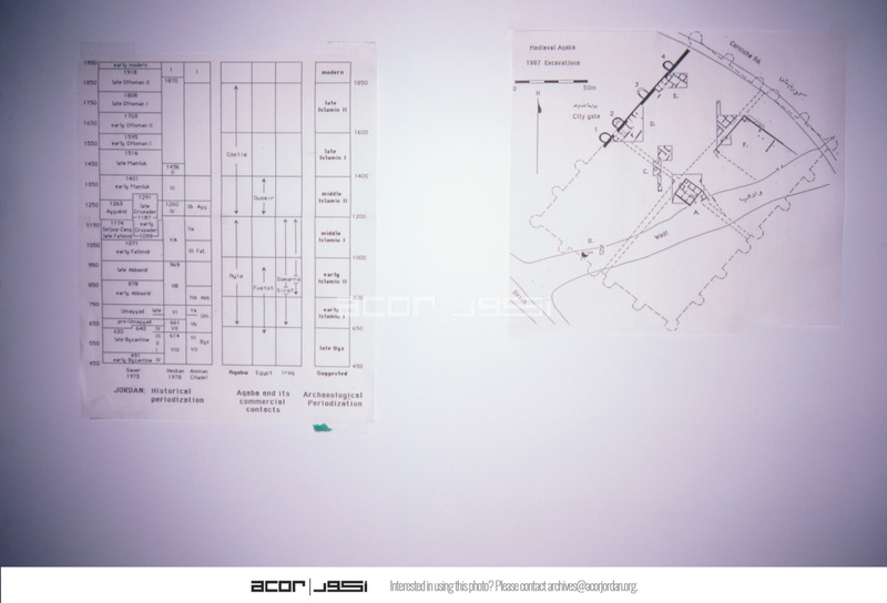 Jordan. Aqaba, map of 1987 excavations and timeline of site
