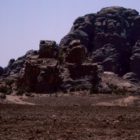 Beidha: The excavated Stone Age village of Beidha, one kilometer south west of Siq al-Barid, Beidha,the white one' in Arabic, dates from the period at the end of the Stone Age known as the Neolithic era, when people in the Near East making the slow, gradual transition from small groups of nomadic hunter-gatherers to settled villagers who domesticated animals and cultivated plants. It was excavated by Mrs. Diana Kirkbride. (Khouri, R. "Petra: a guide to the capital of the Nabataeans" 1986)