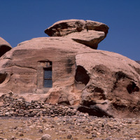 Beidha: The excavated Stone Age village of Beidha, one kilometer south west of Siq al-Barid, Beidha,the white one' in Arabic, dates from the period at the end of the Stone Age known as the Neolithic era, when people in the Near East making the slow, gradual transition from small groups of nomadic hunter-gatherers to settled villagers who domesticated animals and cultivated plants. It was excavated by Mrs. Diana Kirkbride. (Khouri, R. "Petra: a guide to the capital of the Nabataeans" 1986)