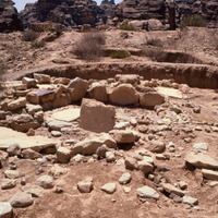 Beidha: The excavated Stone Age village of Beidha, one kilometer south west of Siq al-Barid, Beidha,the white one' in Arabic, dates from the period at the end of the Stone Age known as the Neolithic era, when people in the Near East making the slow, gradual transition from small groups of nomadic hunter-gatherers to settled villagers who domesticated animals and cultivated plants. It was excavated by Mrs. Diana Kirkbride. (Khouri, R. "Petra: a guide to the capital of the Nabataeans" 1986)