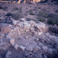 Beidha: The excavated Stone Age village of Beidha, one kilometer south west of Siq al-Barid, Beidha,the white one' in Arabic, dates from the period at the end of the Stone Age known as the Neolithic era, when people in the Near East making the slow, gradual transition from small groups of nomadic hunter-gatherers to settled villagers who domesticated animals and cultivated plants. It was excavated by Mrs. Diana Kirkbride. (Khouri, R. "Petra: a guide to the capital of the Nabataeans" 1986)
