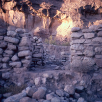 Beidha: The excavated Stone Age village of Beidha, one kilometer south west of Siq al-Barid, Beidha,the white one' in Arabic, dates from the period at the end of the Stone Age known as the Neolithic era, when people in the Near East making the slow, gradual transition from small groups of nomadic hunter-gatherers to settled villagers who domesticated animals and cultivated plants. It was excavated by Mrs. Diana Kirkbride. (Khouri, R. "Petra: a guide to the capital of the Nabataeans" 1986)