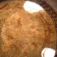 Jordan. Qasr Amra, general view of the dome of the second "caldarium" with a representation of the heavens and the Zodiac