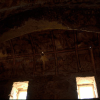 Jordan. Qasr Amra, the decoration of this aisle is completed with the caissons which show craftsman's scenes: stonemasons, carpenters, blacksmiths and masons, representing the different stages of the construction of a building