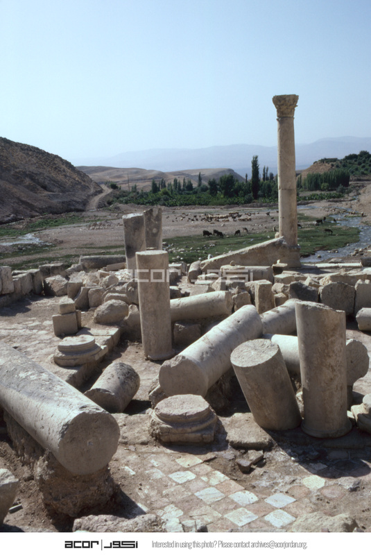 Jordan. Pella (Tabaqat Fahl), Church at the spring and fallen columns