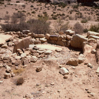 The excavated Stone Age village of Beidha, one kilometer south west of Siq al-Barid, Beidha, 'the white one' in Arabic, dates from the period at the end of the Stone Age known as the Neolithic era, when people in the Near East making the slow, gradual transition from small groups of nomadic hunter-gatherers to settled villagers who domesticated animals and cultivated plants. It was excavated by Mrs. Diana Kirkbride. (Khouri, R. Petra: a guide to the capital of the Nabataeans. 1986), "The excavated Stone Age village of Beidha, one kilometer south west of Siq al-Barid, Beidha, 'the white one' in Arabic, dates from the period at the end of the Stone Age known as the Neolithic era, when people in the Near East making the slow, gradual transition from small groups of nomadic hunter-gatherers to settled villagers who domesticated animals and cultivated plants. It was excavated by Mrs. Diana Kirkbride." (Khouri, R. Petra: a guide to the capital of the Nabataeans. 1986)