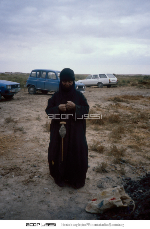 Jordan. Azraq, Ain Al Assad, woman weaving wool