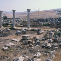 Jordan. Pella (Tabaqat Fahl), the West Church, three columns in its atrium colonnade were put back in their original positions by the DoA, the church was built 6th Century