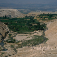 Jordan. Pella (Tabaqat Fahl), general view of Pella from Tell Husn, showing the main mound and the Civic Complex Church and Odeon