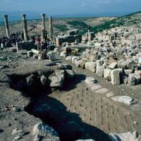 Jordan. Pella (Tabaqat Fahl), the east Church, built in the last quater of 5th Century AD, the basilical church comprises three aisles formed by two internal Corinthian colonnades