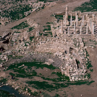 Jordan. Pella (Tabaqat Fahl), the Roman Odeon (foreground) and the Byzantine Civic Complex Church above it