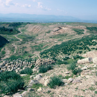 Jordan. Pella (Tabaqat Fahl), general view of Pella from Tell Husn, showing the main mound and the Civic Complex Church and Odeon