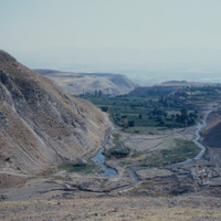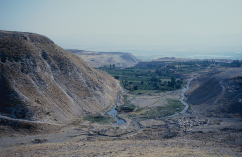 Jordan. Pella (Tabaqat Fahl), general view of Pella from Tell Husn, showing the main mound and the Civic Complex Church and Odeon