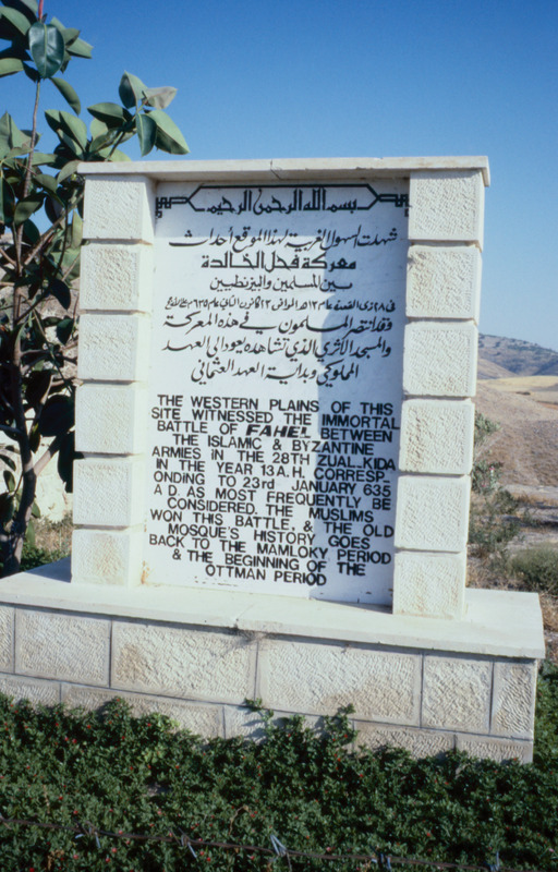 Jordan. Pella (Tabaqat Fahl), the site of the Battle of Fahl, famous battle (in the year 635 A.D.) between the Muslim army, under the Companions Khalid Ibn Al-Walid and Abu ‘Ubaydah Ibn Al-Jarrah, and the Byzantines.