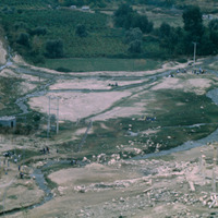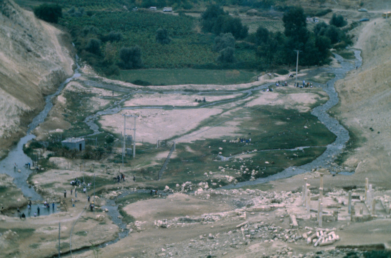 Jordan. Pella (Tabaqat Fahl), view from main mound to Wadi Jirm, showing Byzantine Civic Complex Church