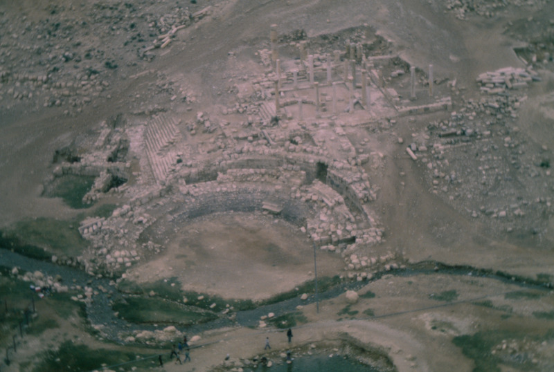 Jordan. Pella (Tabaqat Fahl), the Roman Odeon (foreground) and the Byzantine Civic Complex Church above it