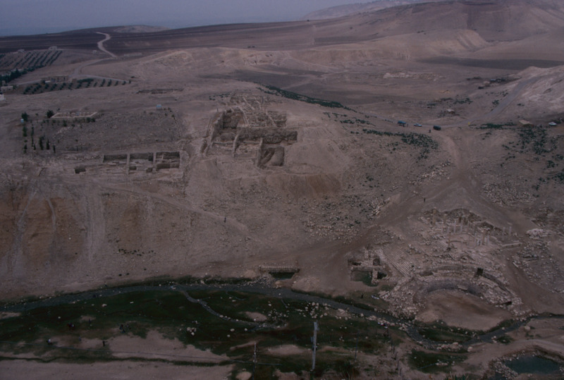 Jordan. Pella (Tabaqat Fahl), general view of Pella from Tell DOA showing the main mound and the Civic Complex Church and Odeon