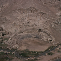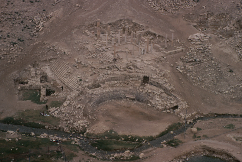 Jordan. Pella (Tabaqat Fahl), the Roman Odeon (foreground) and the Byzantine Civic Complex Church above it